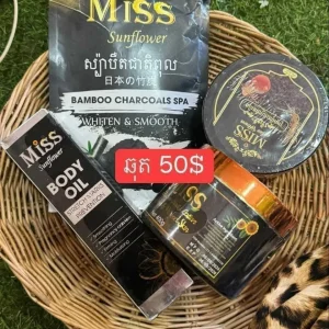 Set of Miss Sunflower: Bamboo Charcoals Spa, Stretch Marks Prevention Body Oil, Body Lotion